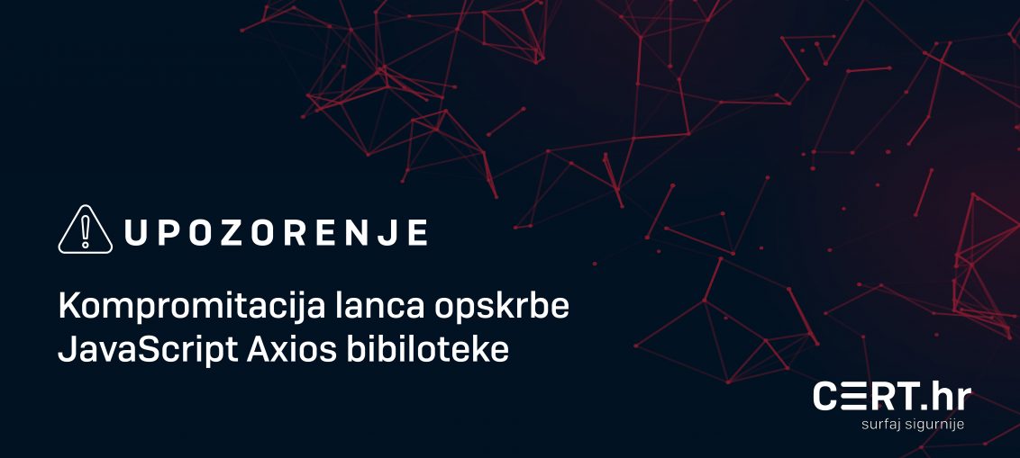 Došlo je do kompromitacije lanca opskrbe JavaScript biblioteke - Axios. S više od 83 milijuna tjednih preuzimanja, Axios je jedan od najčešće korištenih HTTP klijenata u JavaScript ekosustavu. Prema izvještaju portala The Hacker News, napadači su kompromitirali korisnički račun jedne od glavnih osoba za održavanje Axios-a te objavili zlonamjerne verzije biblioteke