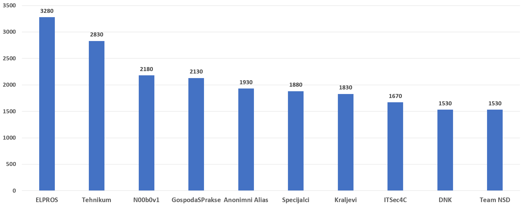 Riješeni su svi ponuđeni zadaci, a čak 15 timova ostvarilo je više od 1000 bodova.