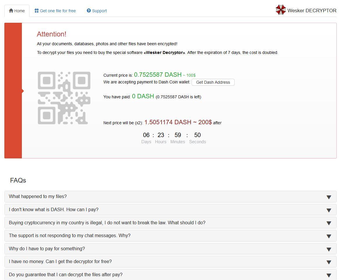 Sigurnosni stručnjak Michael Gillespie pronašao je ransomware naziva Wesker Encrypter koji ne dodaje nastavak, ali ostavlja ucjenjivačku poruku naziva !!!INSTRUCTION_RNSMW!!!.txt.