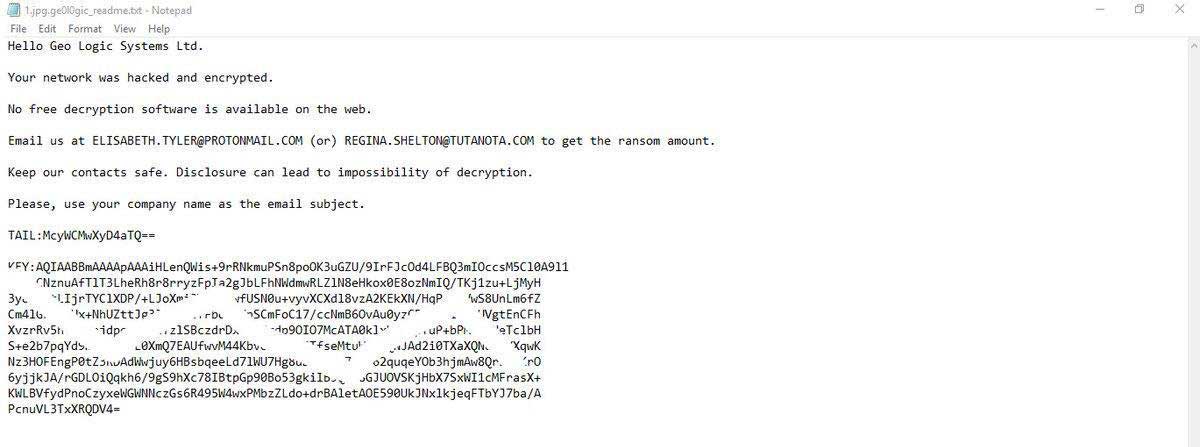 Sigurnosni stručnjak GrujaRS pronašao je novi ransomware Ge0l0Gic koji dodaje nastavak .ge0l0gic i ostavlja ucjenjivačku poruku naziva .ge0l0gic_readme.txt.