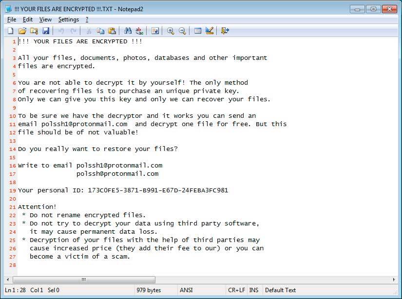 Sigurnosni stručnjak Michael Gillespie pronašao je novu inačicu ransomwarea GlobeImposter 2 koja dodaje nastavak .{dresdent@protonmail.com}DDT šifriranim datotekama.
