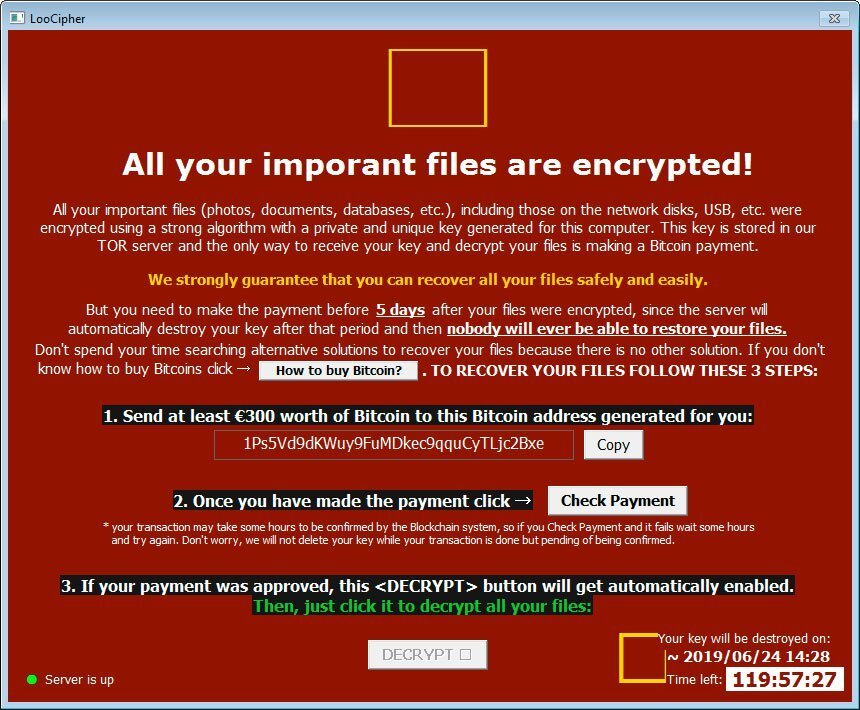 Otkriven je novi ransomware naziva LooCipher koji se aktivno koristi kako bi zarazio korisnike. Iako nije poznato kao se točno ovaj ransomware širi, na temelju nekoliko pronađenih datoteka pretpostavljamo da je riječ o spam kampanji.