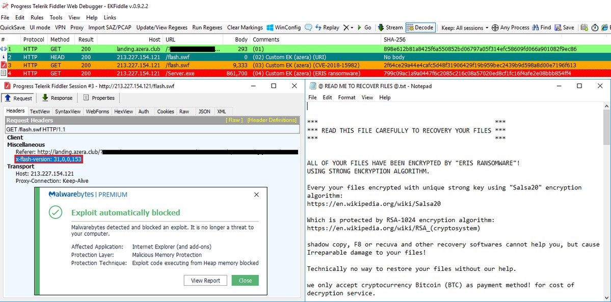 Sigurnosni stručnjak Jérôme Segura pronašao je prilagođeni exploit alat naziva Azera koji širi ransomware ERIS.