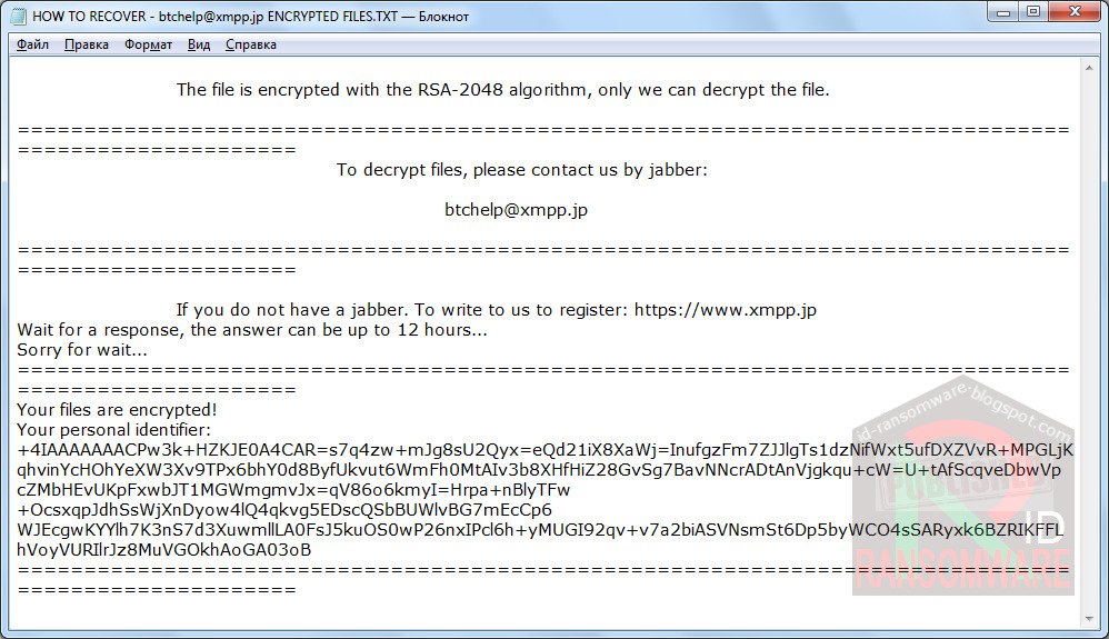 Sigurnosni stručnjak Amigo-A pronašao je novu inačicu ransomwarea Scarab koja dodaje nastavak .btchelp@xmpp.jp šifriranim datotekama i ostavlja ucjenjivačku poruku naziva HOW TO RECOVER – btchelp@xmpp.jp ENCRYPTED FILES.TXT.