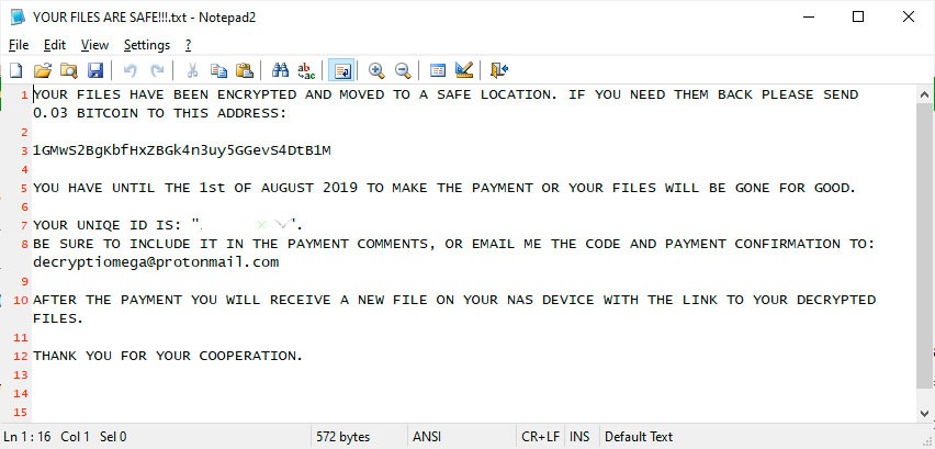 Napadači brišu datoteke na javno dostupnim Lenovo Iomega NAS uređajima i ostavljaju ucjenjivačke poruke. U tim porukama navedeno je kako će napadači povratiti datoteke ako im se isplati otkupnina u bitcoinu.