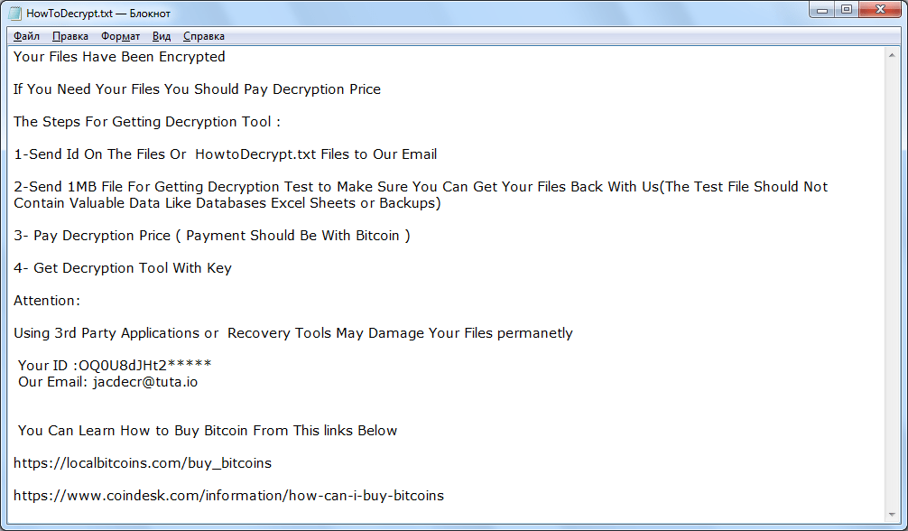 Sigurnosni stručnjaci iz MalwareHunterTeama pronašli su novu inačicu ransomwarea koja dodaje nastavak .aes šifriranim datotekama i ostavlja ucjenjivačku poruku naziva Instruction.txt.