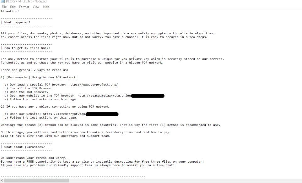 Sigurnosni stručnjak GrujaRS pronašao je novi ransomware naziva Maze koji ostavlja ucjenjivačku poruku naziva DECRYPT-FILES.txt.