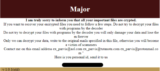 Sigurnosni stručnjak GrujaRS pronašao je novu inačicu ransomwarea Major koja dodaje nastavak .AIR i ostavlja ucjenjivačku poruku naziva TRY_TO_READ.html.