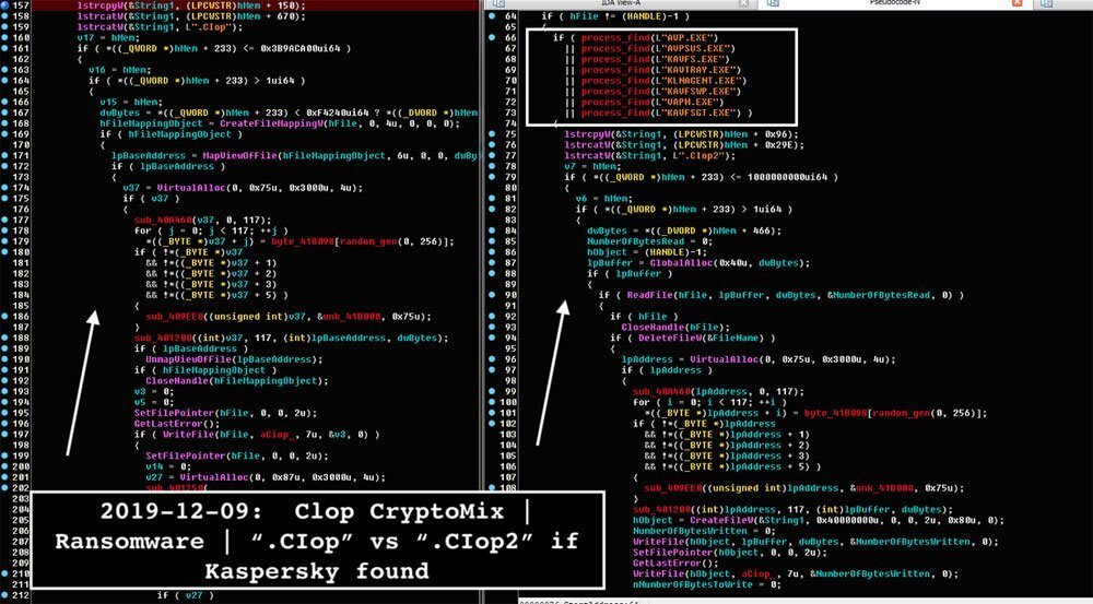Sigurnosni stručnjak Vitali Kremez analizirao je novu inačicu ransomwarea Clop Cryptomix koja pokušava izbjeći antivirusni softverski paket Kaspersky Product Suite.