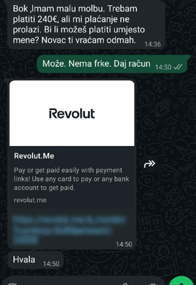 - traži uplate novca ili širi istu prijevarnu poveznicu